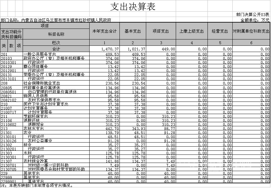 内蒙古自治区乌兰察布市丰镇市红砂坝镇人民政府2016年支出决算表