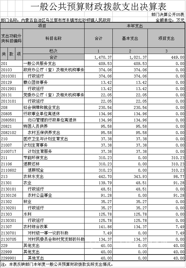 内蒙古自治区乌兰察布市丰镇市红砂坝镇人民政府2016年一般公共预算财政拨款支出决算表