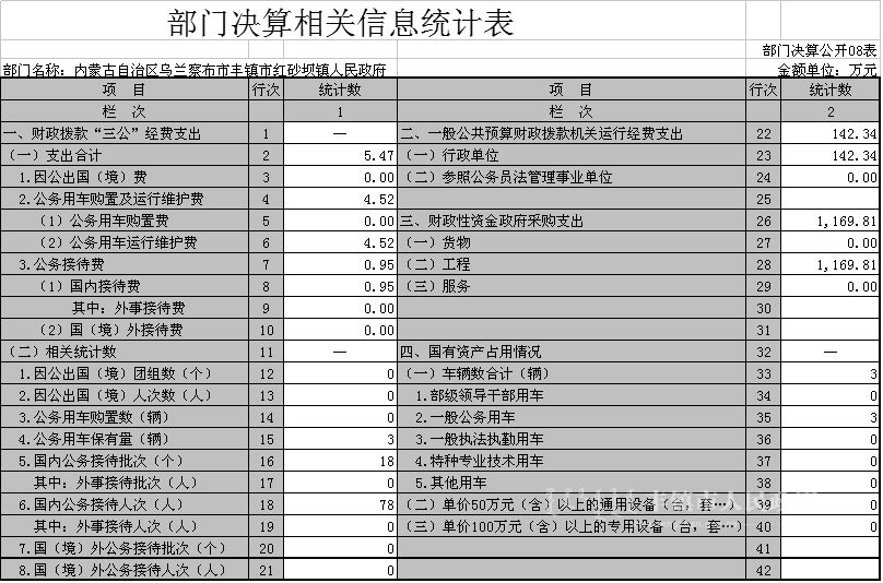 内蒙古自治区乌兰察布市丰镇市红砂坝镇人民政府2016年部门决算相关信息统计表