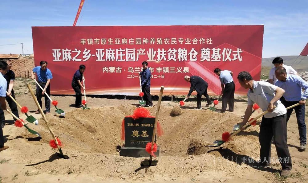 6月20日,投资300万元的丰镇市原生亚麻庄园种养殖农民专业合作社在丰镇市三义泉镇四道咀村举行奠基仪式,政府副市长张军及农业、交通、扶贫、就业、工商联、质检、三义泉镇相关负责人参加奠基仪式。该扶贫粮仓是内蒙古格琳诺尔生物有限公司销售、加工、种植、仓储全产业链重要环节,补齐了最后一块短板,项目总储量达到3000吨,占地2.35亩,建成后将辐射周边4.5万亩耕地,1000多户农户参与订单种植,其中贫困户400多户,对于促进贫困户稳定增收、实现产业带动具有重要的示范意义。